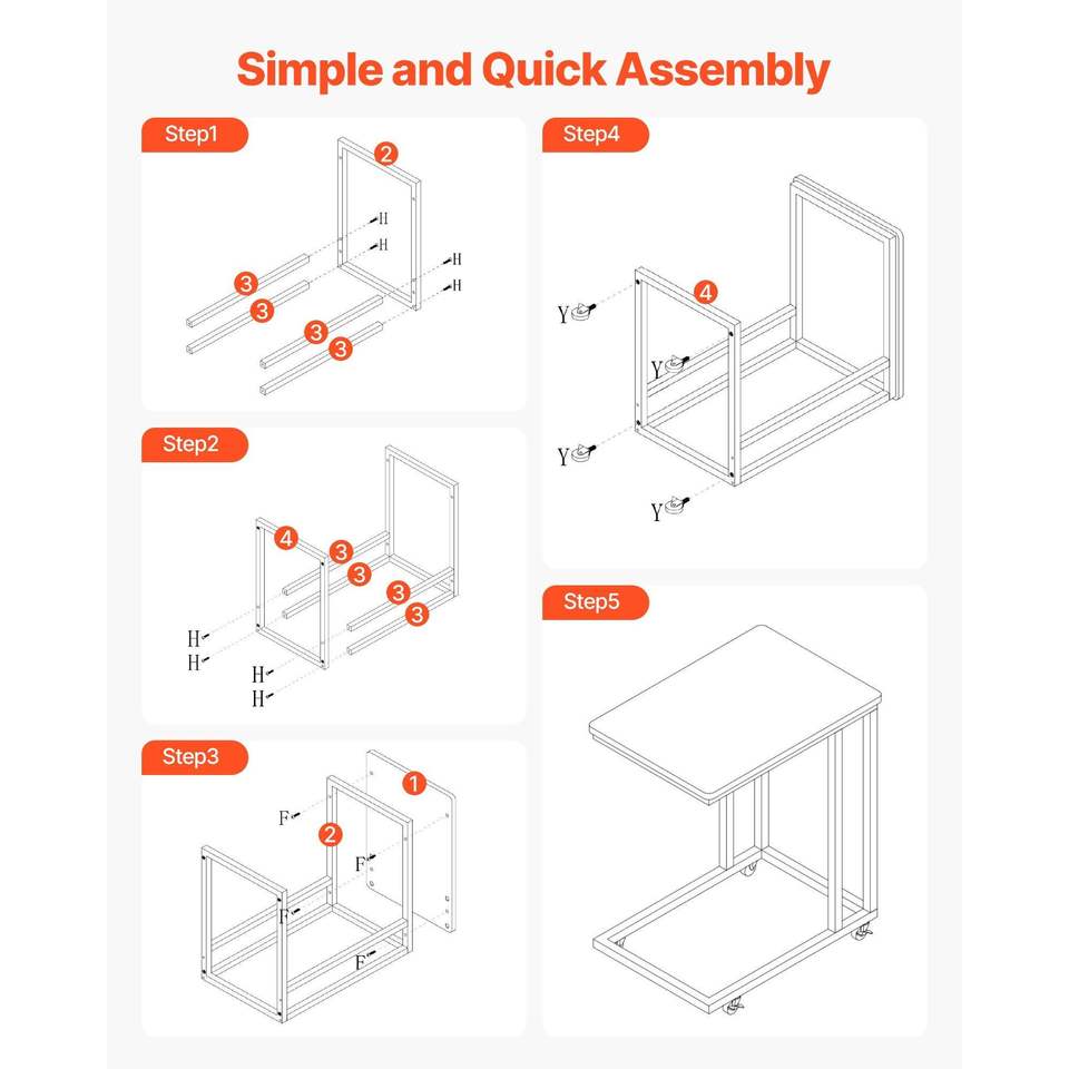 Comodino con Struttura in Metallo a Forma di C e Ruote, Tavolino Portatile per Soggiorno, Camera da Letto o Ufficio