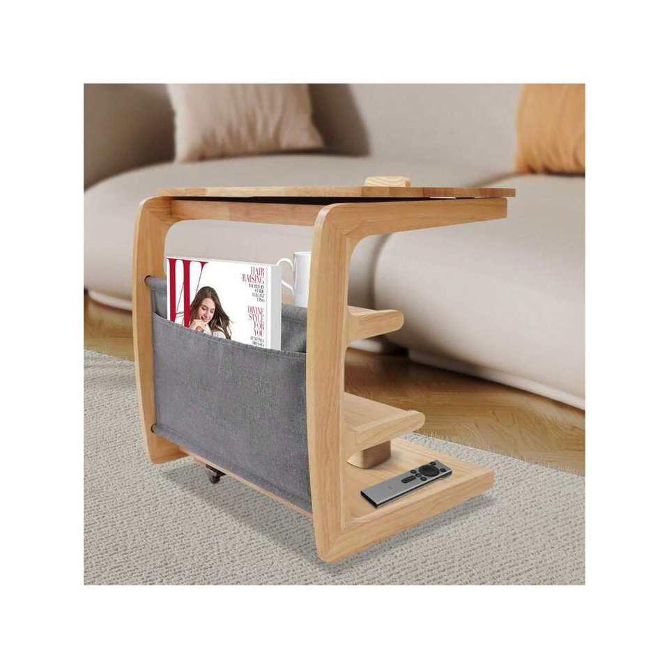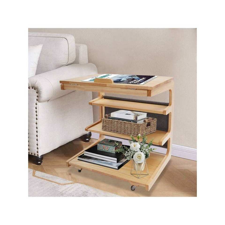 Tavolo a forma di C, tavolino divano con ruote, tavolino a 4 livelli a forma di C con tappo a libro, tavolino moderno per soggiorno