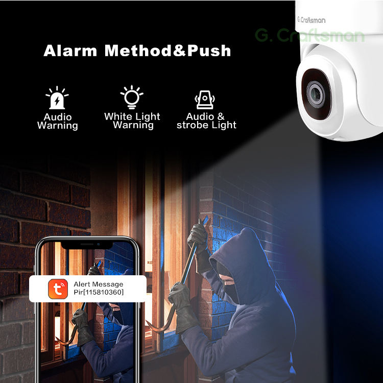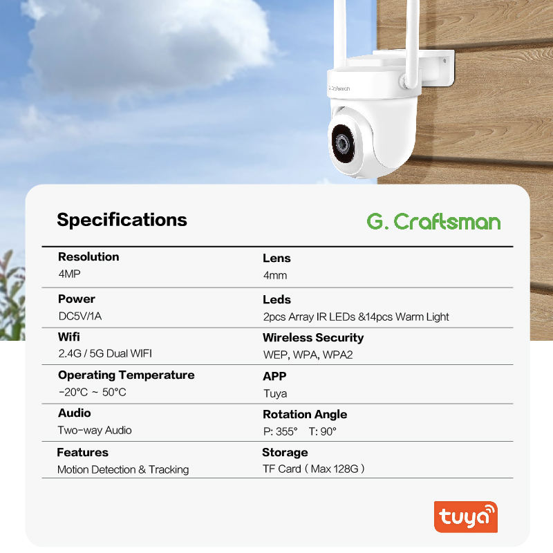 C1-Tuya Smart Wireless WIFI PTZ Camera 2K 4MP Outdoor CCTV IP Home Security Camera WI-FI OEM ODM Manufacturer G.Craftsman
