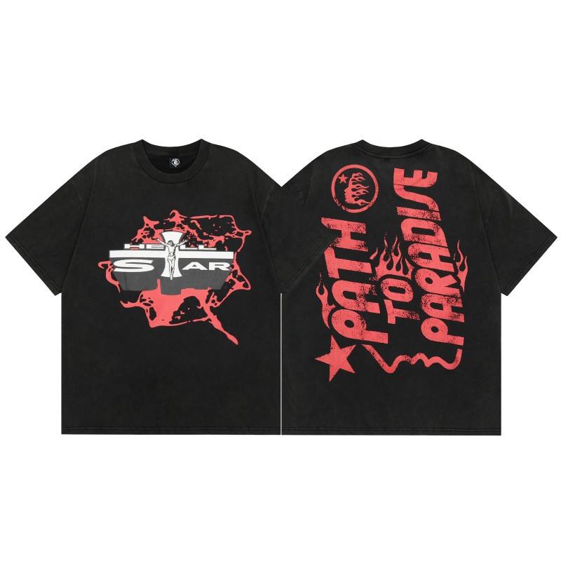 C1329 T-Shirt Unisex in Cotone di Alta Qualità, Lavata e Invecchiata, con Stampa alla Moda