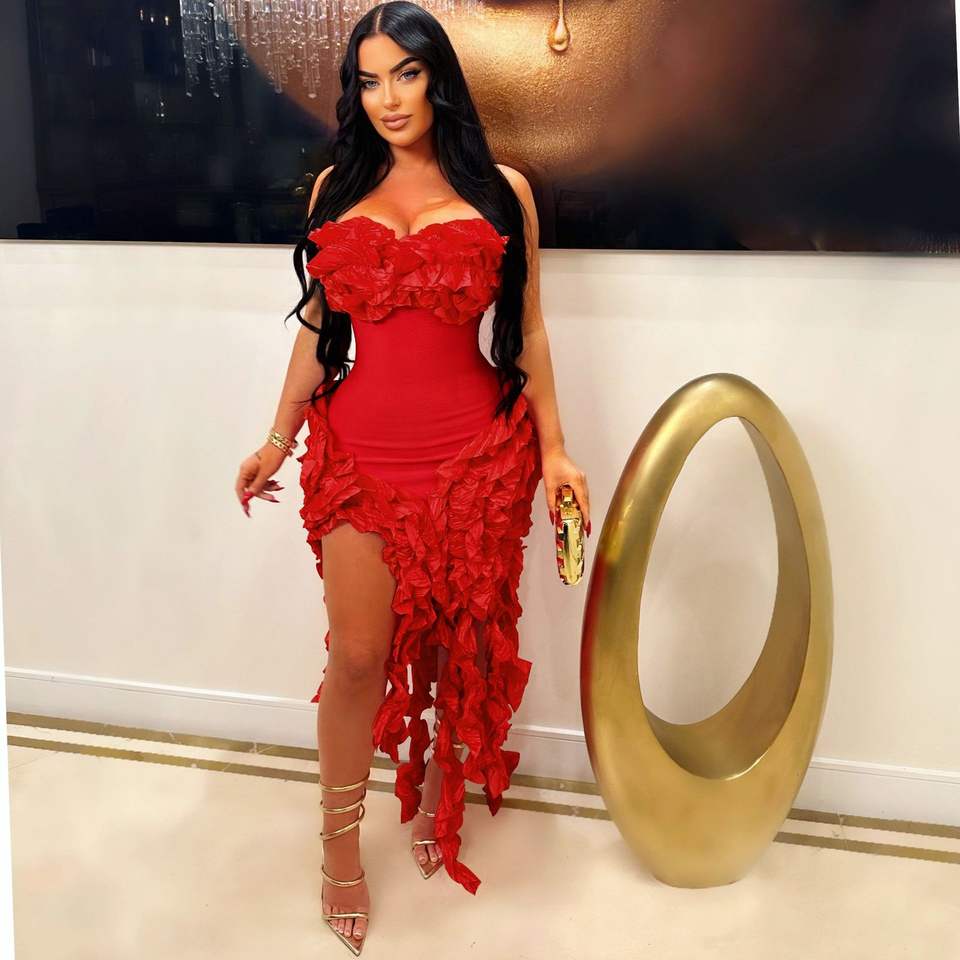C251020 Elegante Abito Midi con Spalle Scoperte e Volant per Cena, Festa e Club 2025