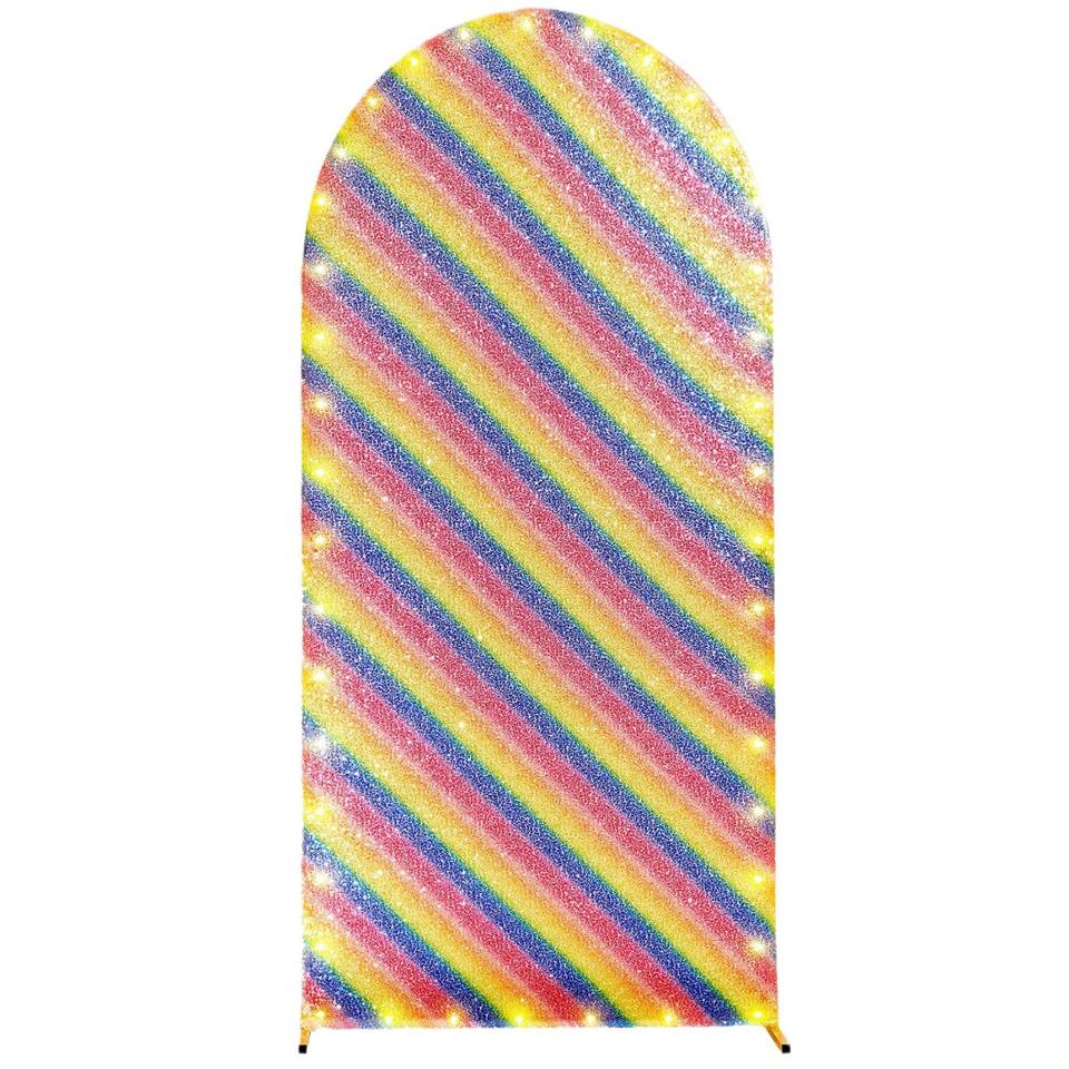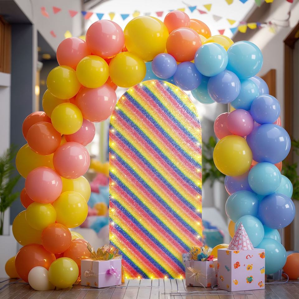 C252 copertura arco LED luce stringa foto fondale con paillettes semicircolare sfondo festa compleanno arco abito in tessuto