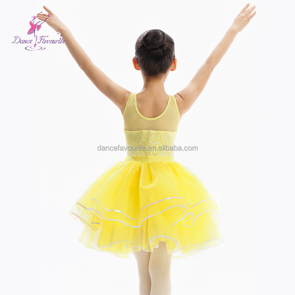 C26070 Yellow Mesh & Sequin Spandex Bodice Ballet Tutu Kids' Group Dance Ballet Costume Performance Tutus
