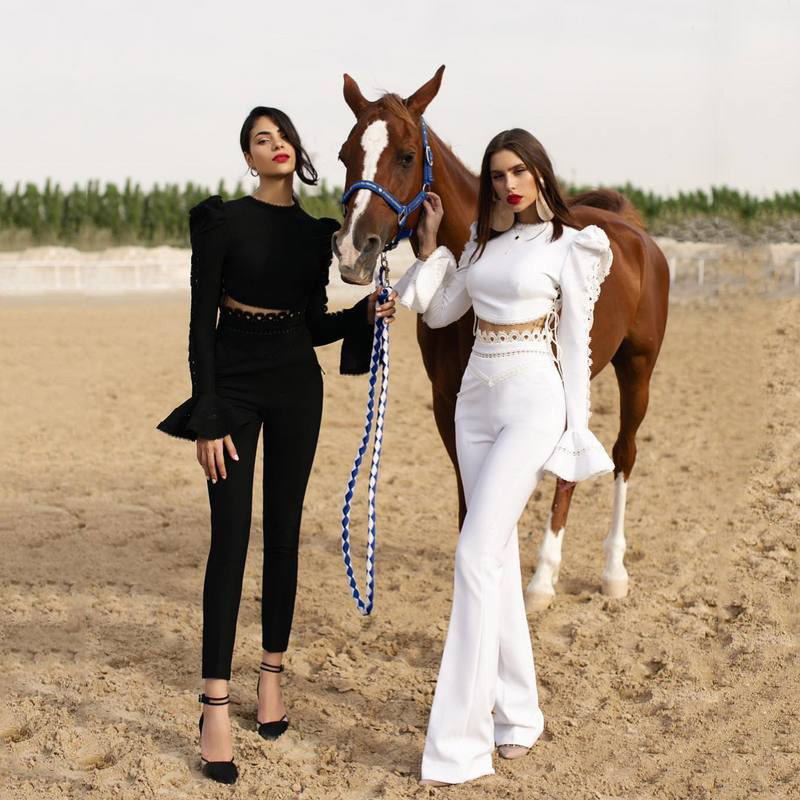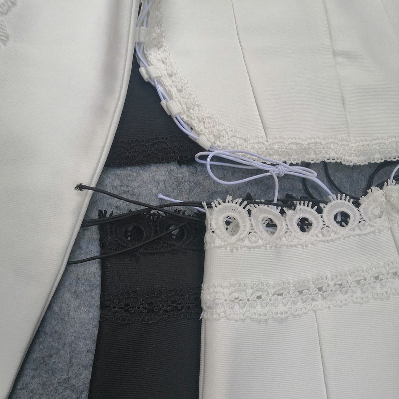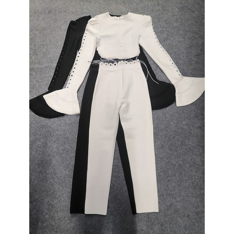 C2614 Summer Casual Solid White Black Flare Sleeve Lace-Up Hollow Slim Eco-Friendly Women's Two-Piece Long Set Clothing