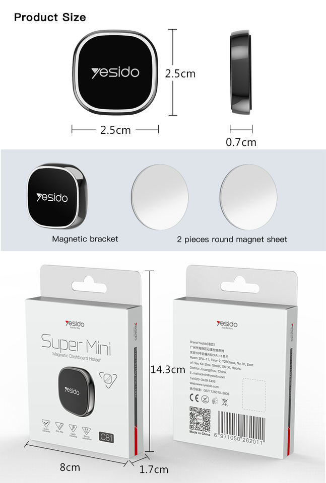 C81 Yesido Supporto Magnetico da Parete per Casa e Ufficio, 4 Pezzi, in Lega di Zinco e Silicone, Mini Supporto Magnetico per Cellulare da Auto