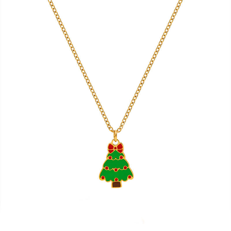 CAIOOCHE Christmas Drip Oil Reindeer, Snowman, and Bell Necklace, Creative Design, Versatile Gift Pendant for Women