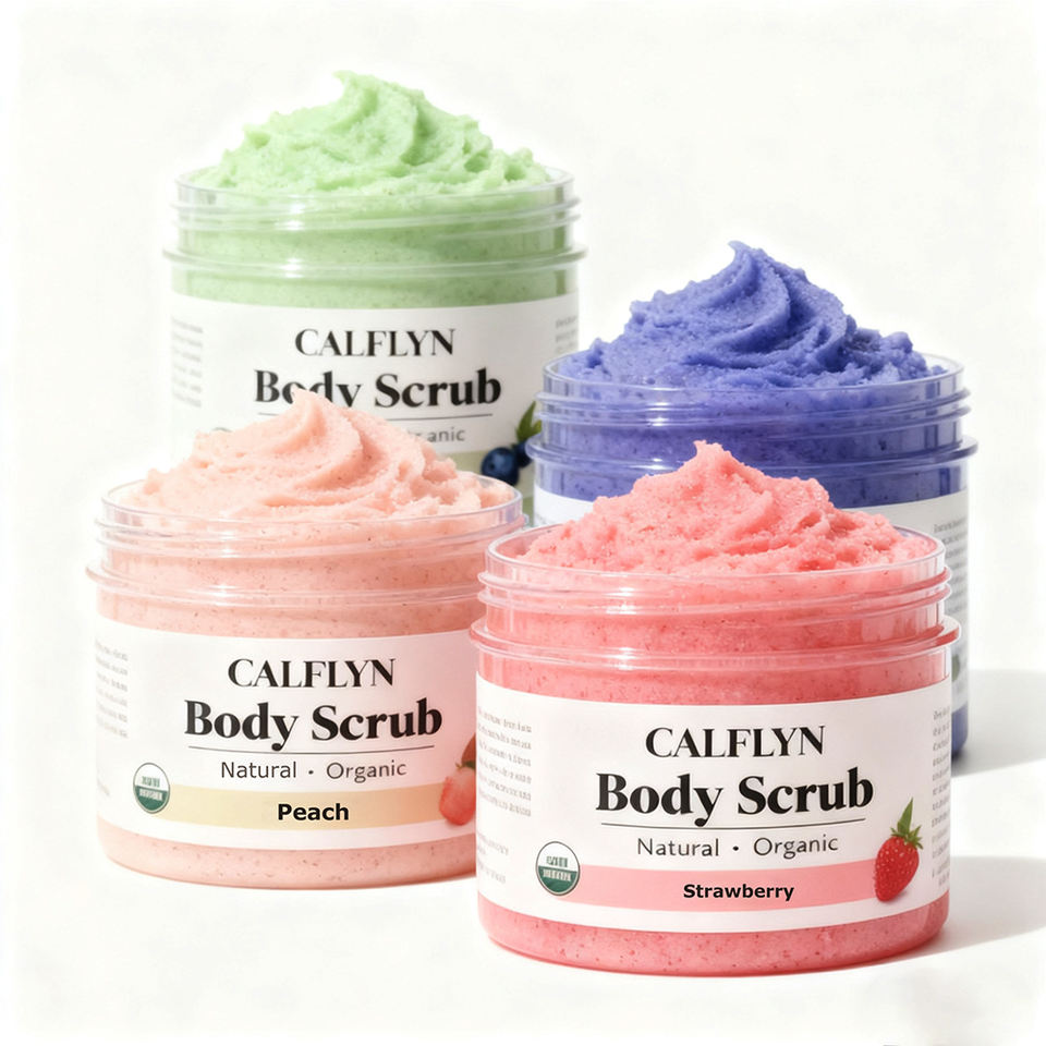 CALFLYN Scrub Corpo Naturale e Biologico all'Avocado/Fragola/Pesca/Mirtillo Esfoliante Idratante OEM/ODM Etichetta Privata