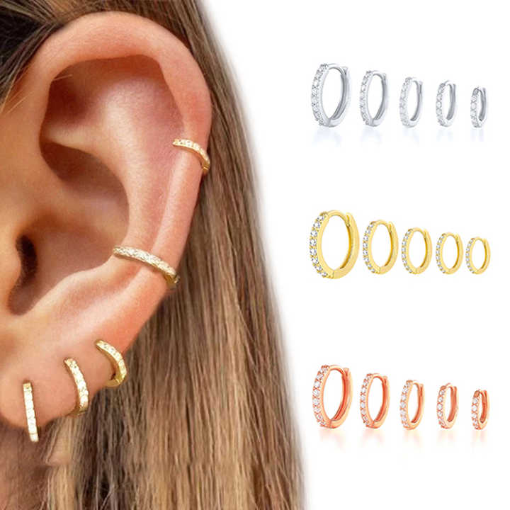 CAOSHI Orecchini da Sposa Placcati in 3 Colori, 5 Misure, per Donna e Uomo, Piccoli Orecchini a Cerchio, Anello da Naso Piccolo, Orecchini a Lobo per Ragazza, Pendente a Cerchio
