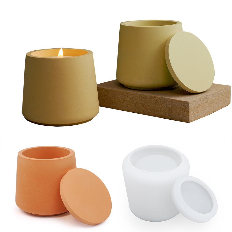 CARATTE Custom Round Silicone Candle Jar Mold with Lid Concrete Silicon Mould for Candle Jars and Planters