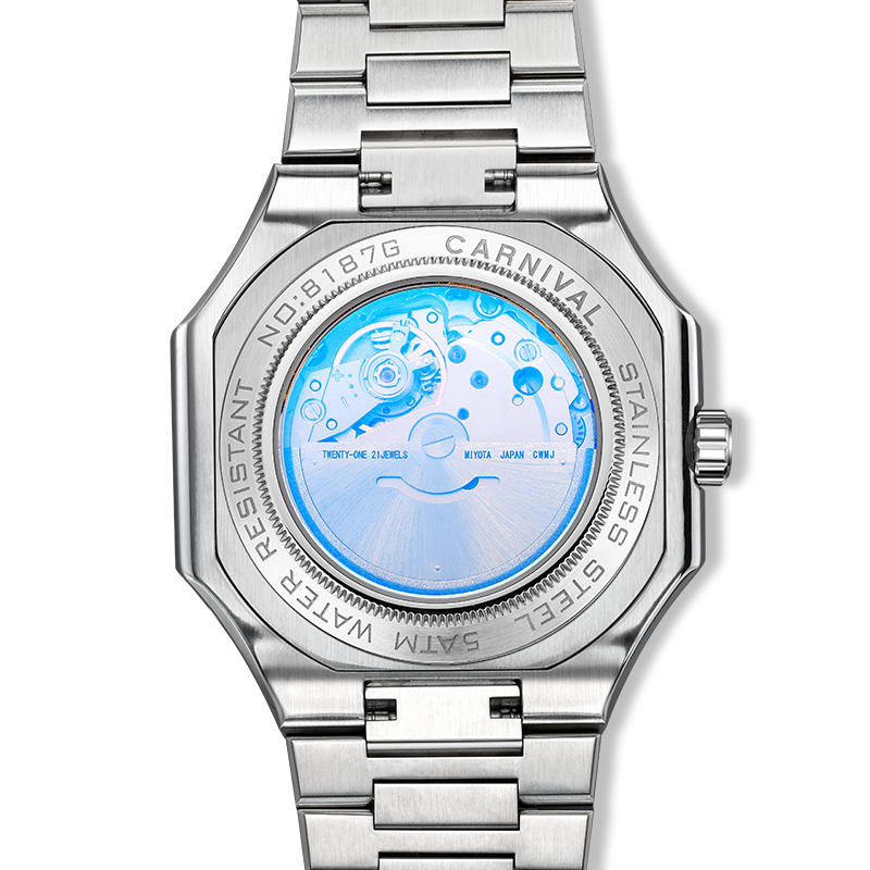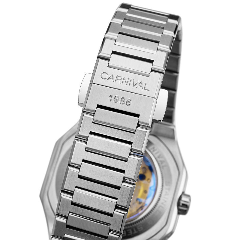 CARNIVAL 41mm Stainless Steel Business Moon Phase 24 Hours Week Display Mechanical Automatic Watch for Men