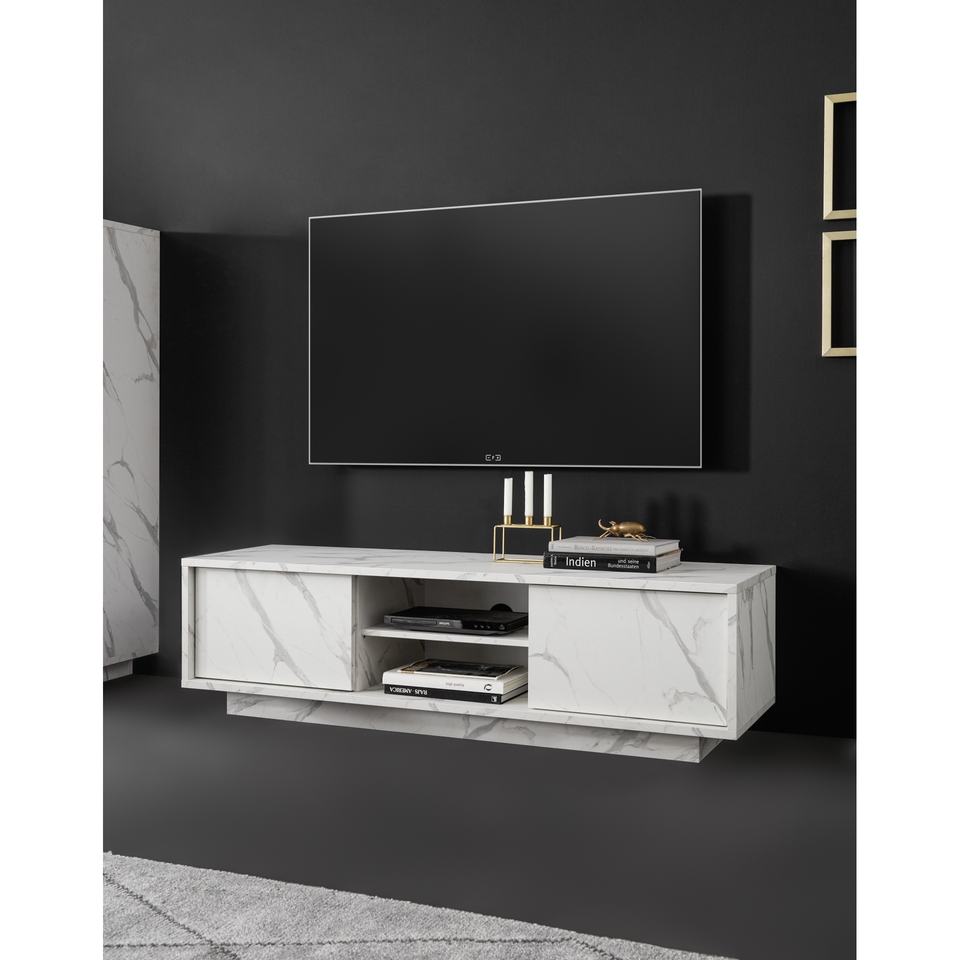 Mobile TV Minimalista CARRARA per Soggiorno 139x43 cm H. 44 Effetto Marmo Bianco