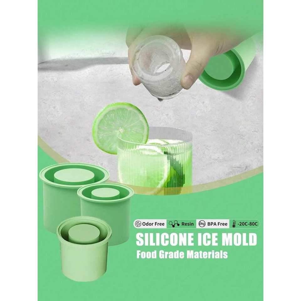 CASALIVA 3-Mold Silicone Ice Cube Tray Compatible with 20-40 oz Cups Freezer Container Lid for Ice Drinks Juice Whiskey Cocktail
