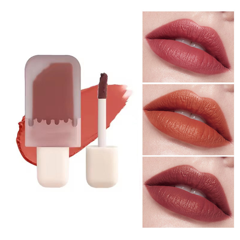 CC36490 Rossetto All'Ingrosso a Forma di Gelato Piccolo Budino Bianco Lucidalabbra Argilla Labbra Effetto Velluto Opaco Impermeabile Lunga Durata