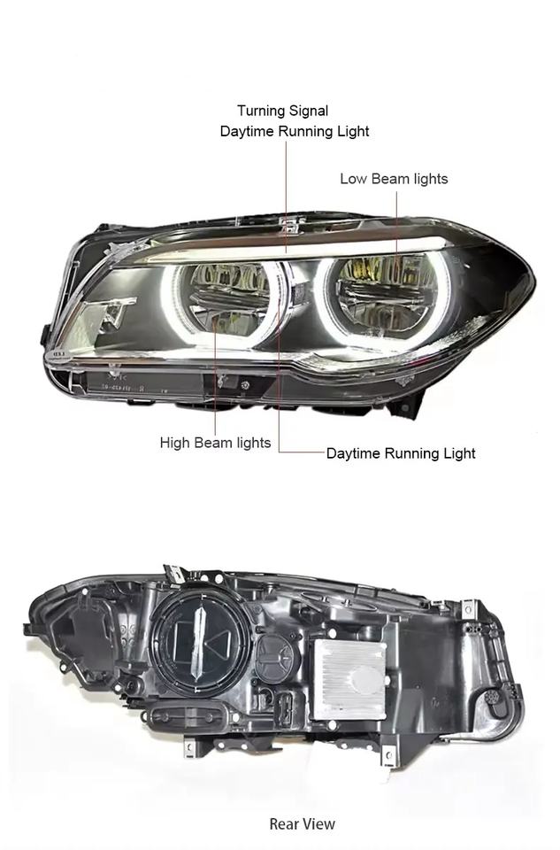 Fari anteriori Full LED con Angel Eye in stile LCI per BMW Serie 5 F10 F18 & M5 (2011-2017) - Modello CCTC 520i 535i 525i