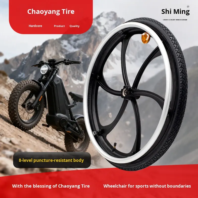 Ruote Posteriori per Sedia a Rotelle Sportiva Fuoristrada a 6 Lame Integrate CE, Pneumatici Larghi da 24 Pollici, Forniture per Terapia Riabilitativa
