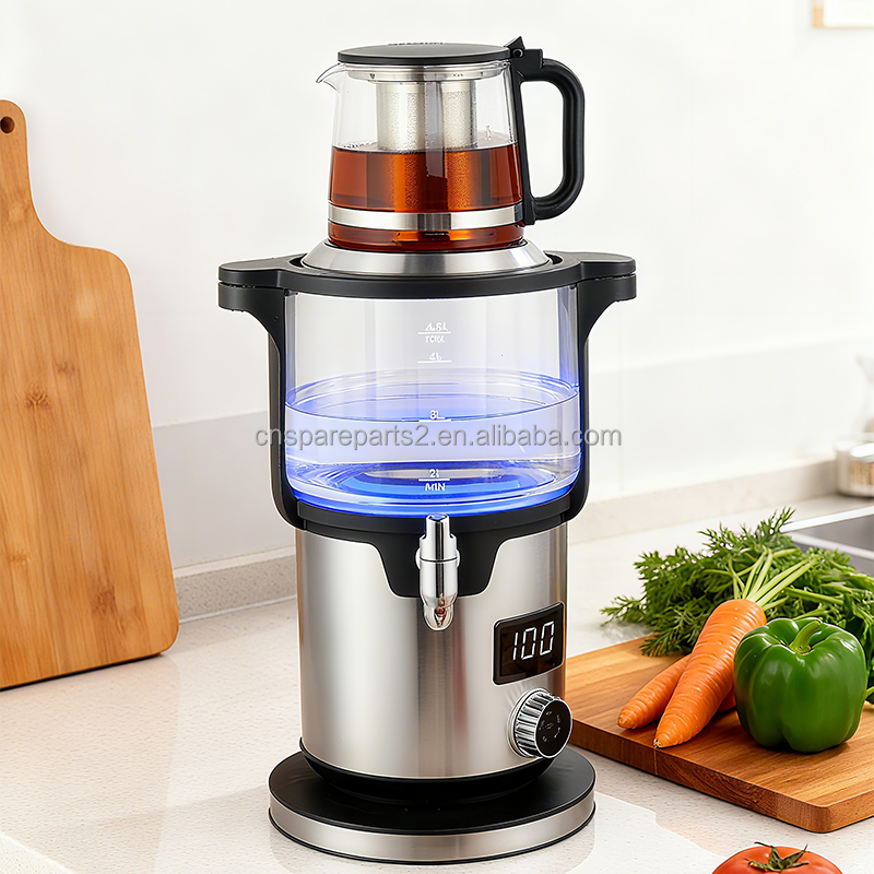 CE/CB Approved 5.6L Capacity Large Samovar High Boron Glass Teapot Keep Warm Function Double Boiler Pot Turkish Tea Maker Kettle