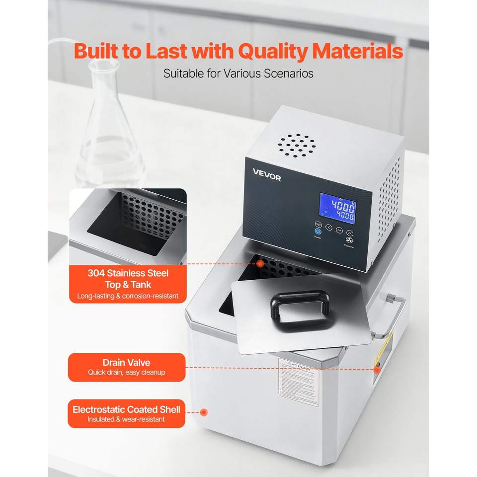 Dispositivo Termostatico da Laboratorio Certificato CE da 10 L, Bagno d'Olio a Circolazione ad Alta Temperatura 300 Gradi Celsius/572 Gradi Fahrenheit a Temperatura Costante