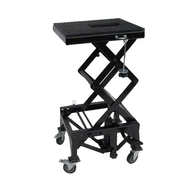 Piattaforma idraulica con struttura in acciaio resistente e ruote con sollevamento di servizio per motocicli da 300 libbre