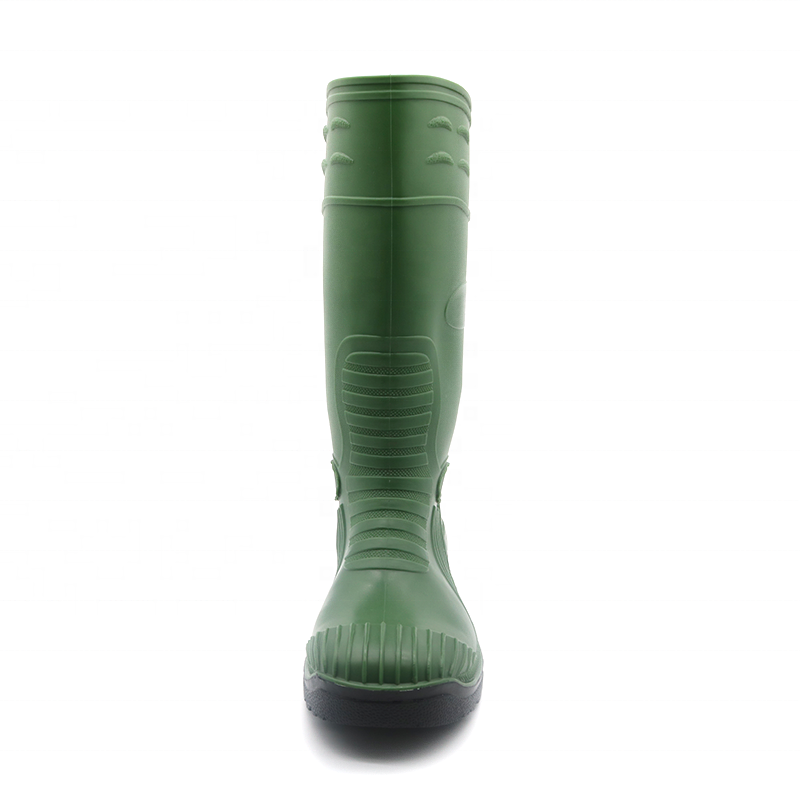 CE Oil Acid Alkali Resistant Waterproof Anti Slip Steel Toe Prevent Puncture Reflective Green Pvc Safety Rain Boots for Men