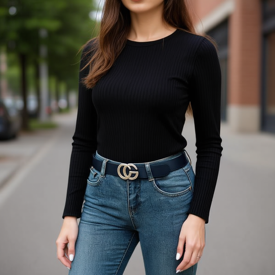 Cintura in pelle PU con fibbia CG 3,5 cm x 110 cm, cintura da donna alla moda