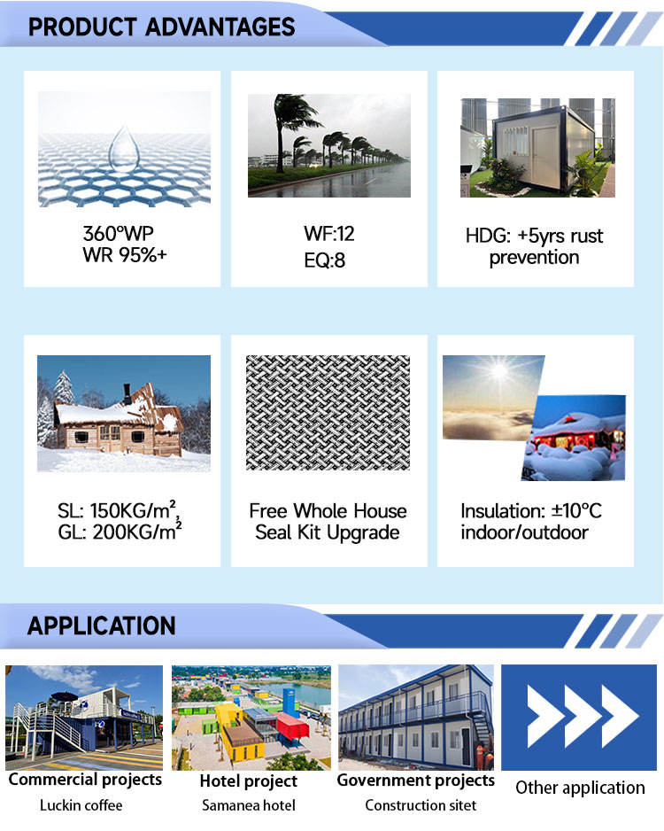 Isolamento: Pannello sandwich in acciaio colorato EPS di 50 mm: Il pannello sandwich in acciaio colorato EPS spesso 50 mm offre un eccellente isolamento, garantendo buone prestazioni termiche ed efficienza energetica. Questo rende la casa contenitore adatta a vari climi e ambienti, migliorando il comfort e riducendo i costi energetici.