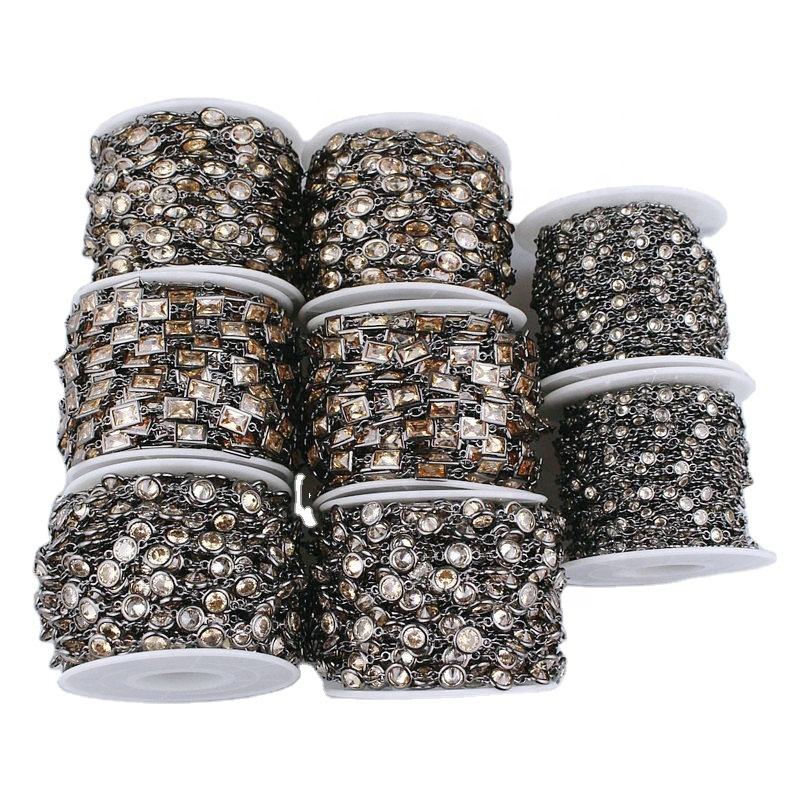 CH-D19 Hot champagne Rosary Chains,hot Selling Cz Beads With Wire Coiled Rosary Chain,link Chain Jewelry Making Wholesale