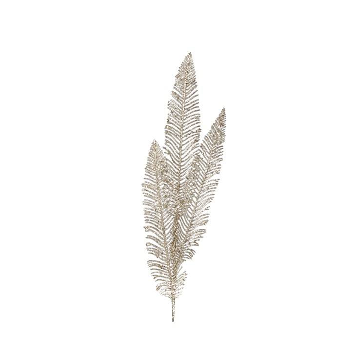 Ramo di Pino Glitterato Color Champagne con 3 Foglie