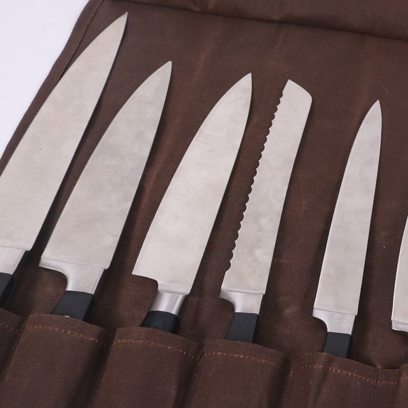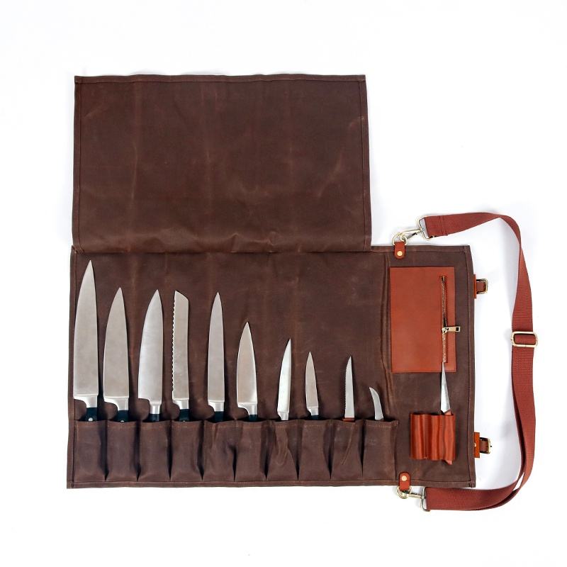 Borsa rotolo CHANGRONG Custom Vintage resistente all'acqua e utilità marrone tela cerata coltello da cuoco