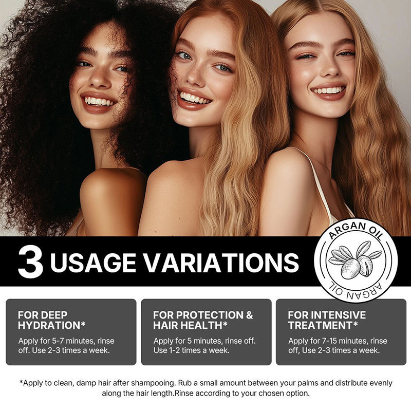 Acido ialuronico, Argan oil, organico, Olio di cocco, Cheratina, Di erbe, Olio dell'albero del tè, AminoacidiIngrediente
