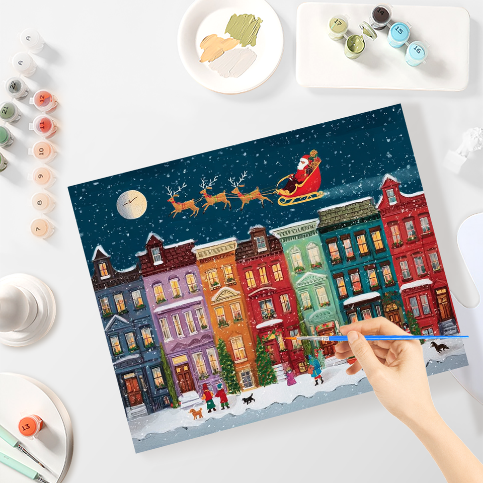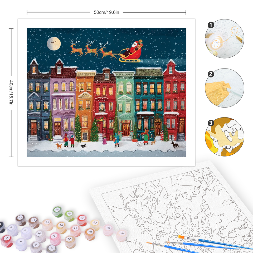 CHENISTORY Kit Pittura Fai da Te di Natale con Numeri, Pittura Acrilica su Tela con Numeri, Illustrazione Artistica da Parete per Regalo Fai da Te