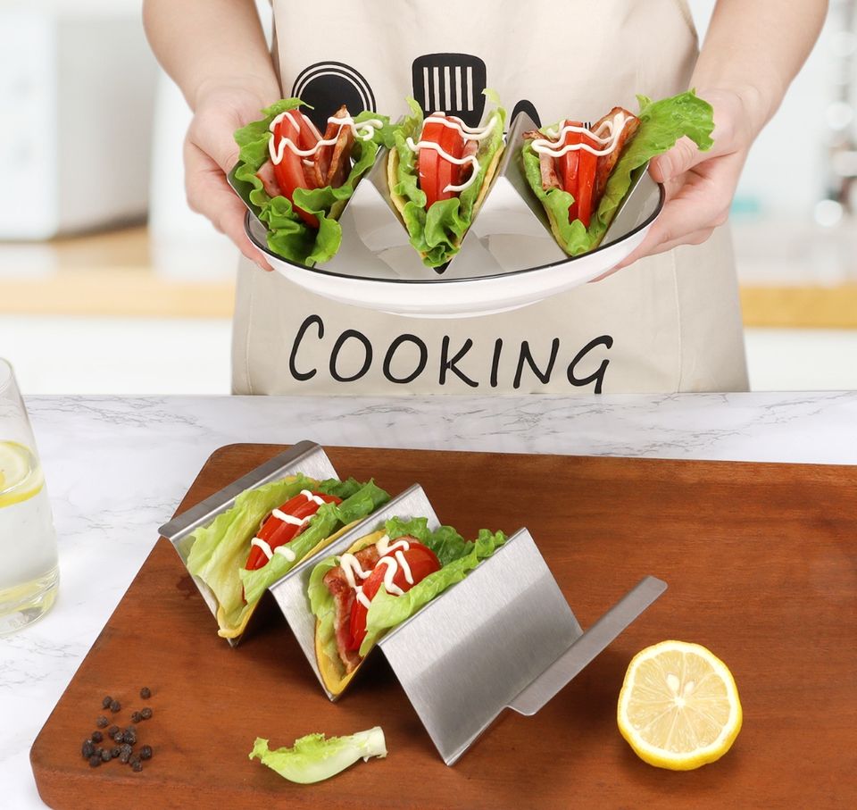 CHRT 3 Wave Stainless Steel Taco Holder for Oven & Microwave Bake Safe Stainless Steel Taco Stand Rack Tray Style