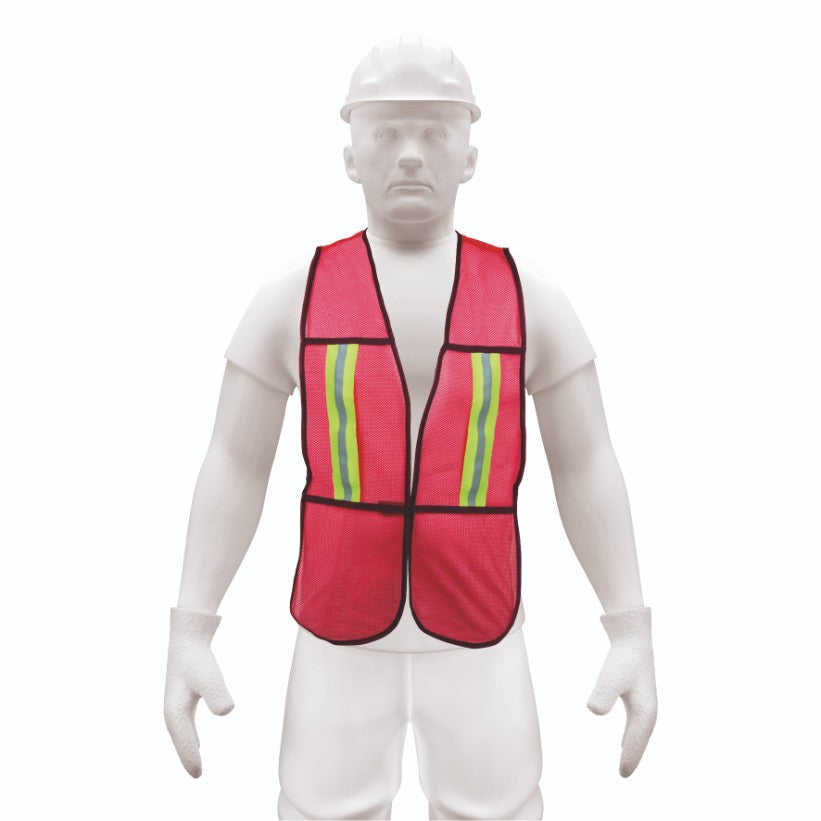 CHS-200R Quick Dry Workwear Safety Vest with Reflective Strips Hi Vis Waterproof Customizable Logo Polyester Jacket in Red Color