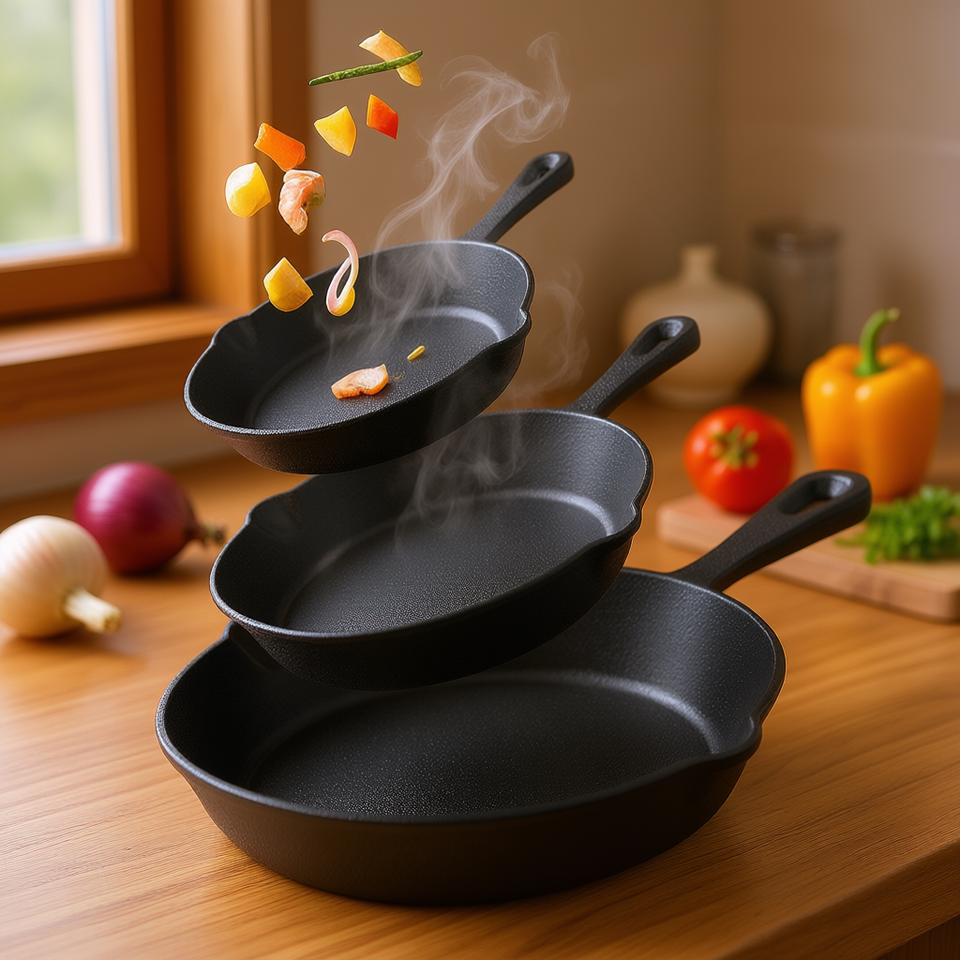 Set di Padelle in Ghisa CJCJ 3 Pezzi 6in 8in 10in Antiaderenti e Adatte al Forno per Cucinare e Cuocere al Forno