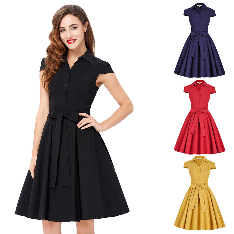 CL010408 Grace Karin Cap Sleeve Retro Vintage Style Collar High Stretchy 1950s Women Summer Vintage Dress
