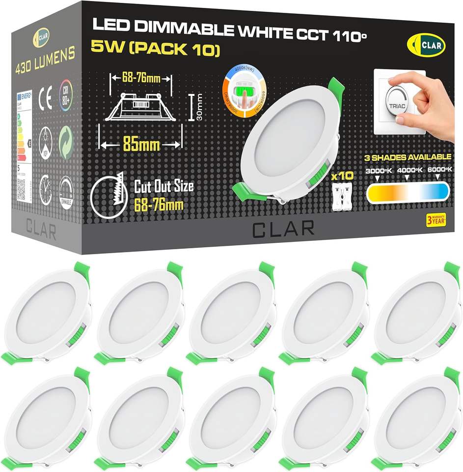 Faretto LED da Incasso Dimmerabile CLAR 5W in Alluminio Ultra Sottile, Design da Soffitto, Foro 6883 mm, Finitura Bianca, Garanzia 3 Anni