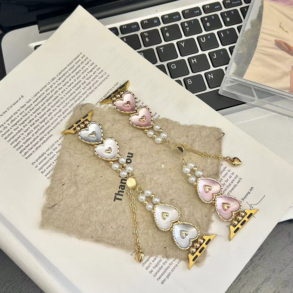 CM Classy Elegant Girl Vintage Pink Silver Mini Hearts Watch Bracelet for Apple Watch