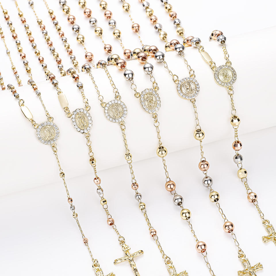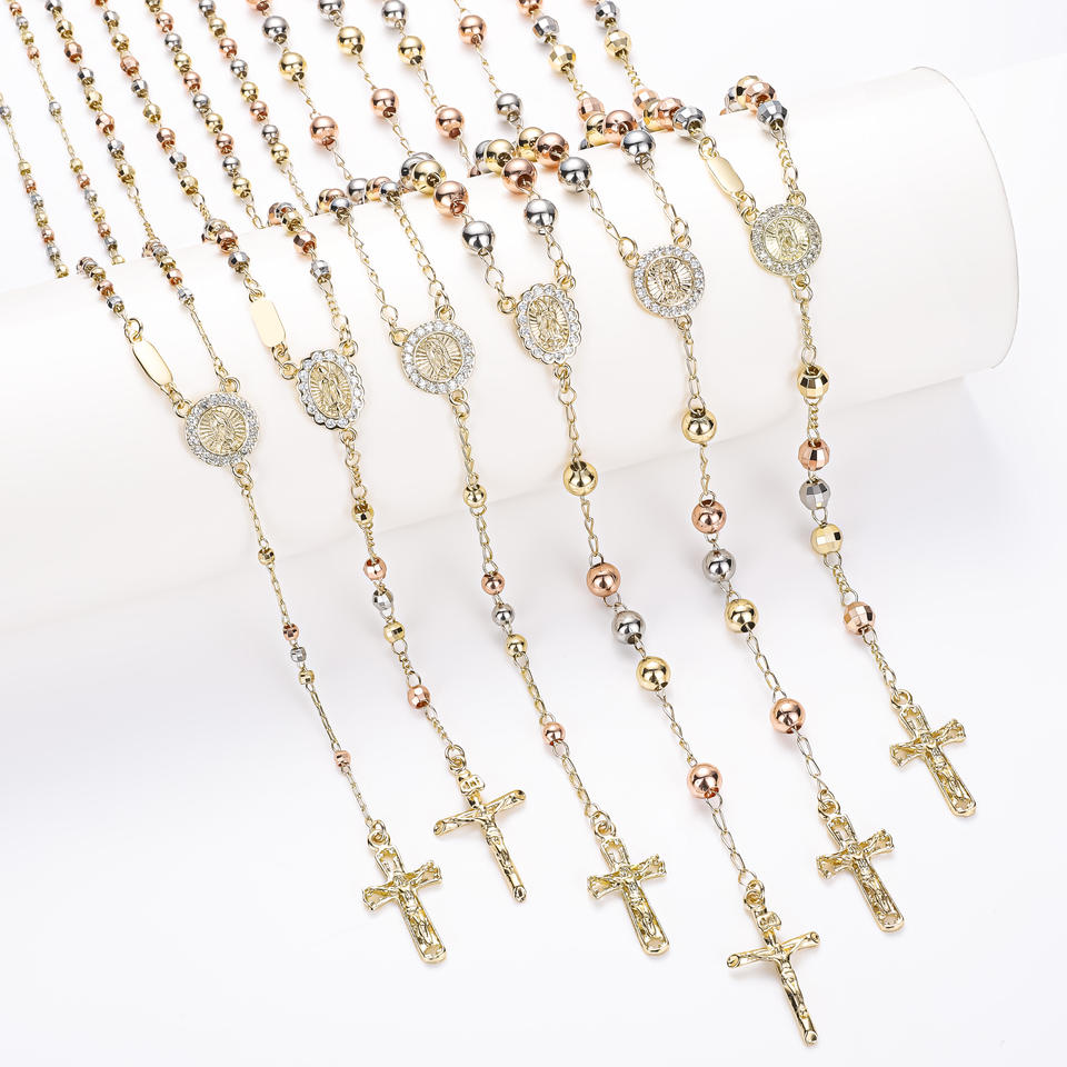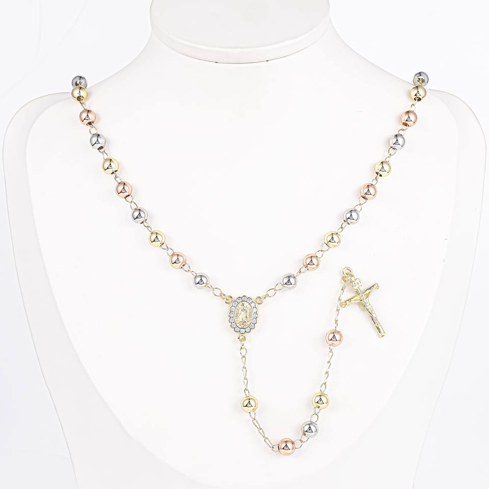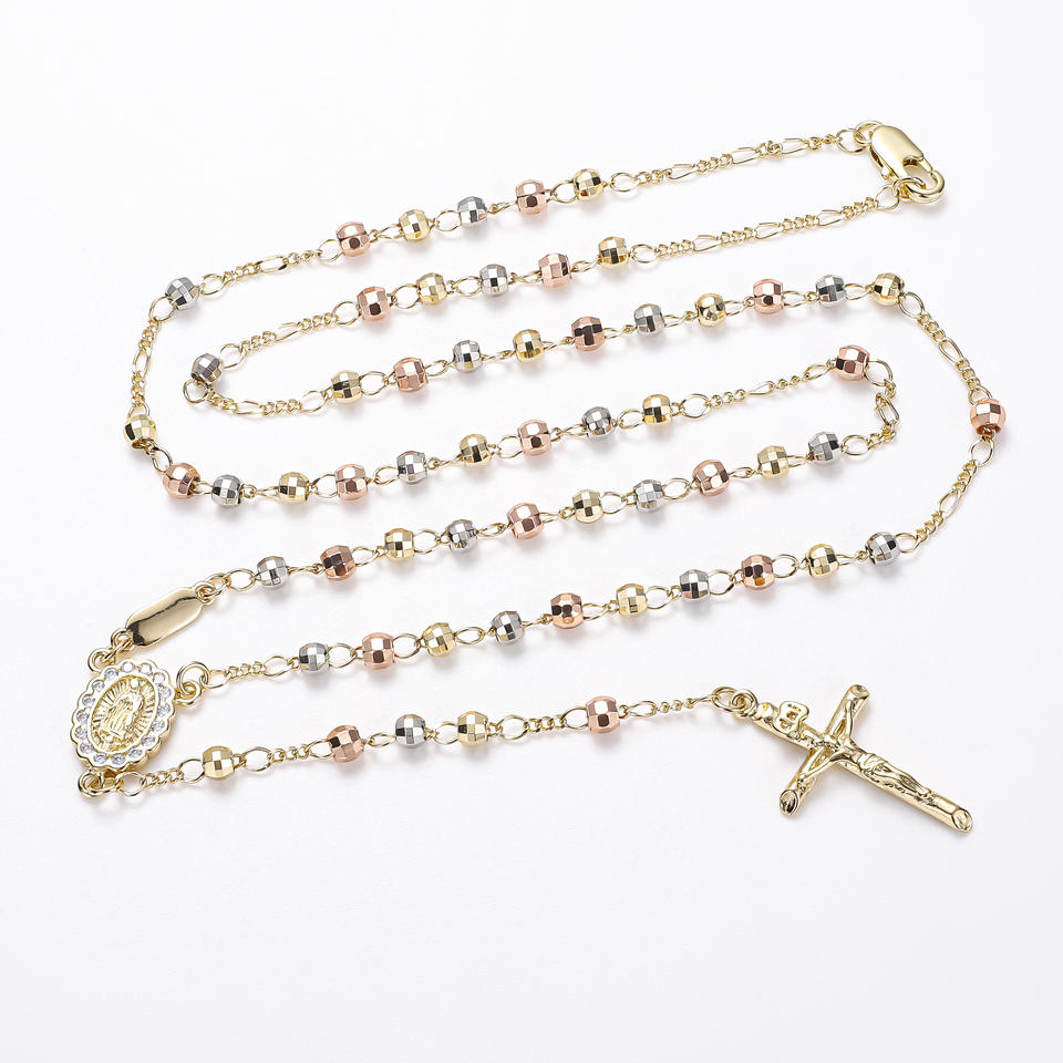 CM Jewelry 14k Gold Plated Virgin Mary Religious Rosaries Rosarios Catolicos Joyeria Diamond Bead Tricolor Catholic Rosaries