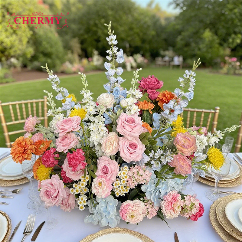 Serie foresta CM-TW018 matrimonio corridoio di fiori rosa rosa artificiale corridoio verde corridore di fiori per la decorazione d'ingresso
