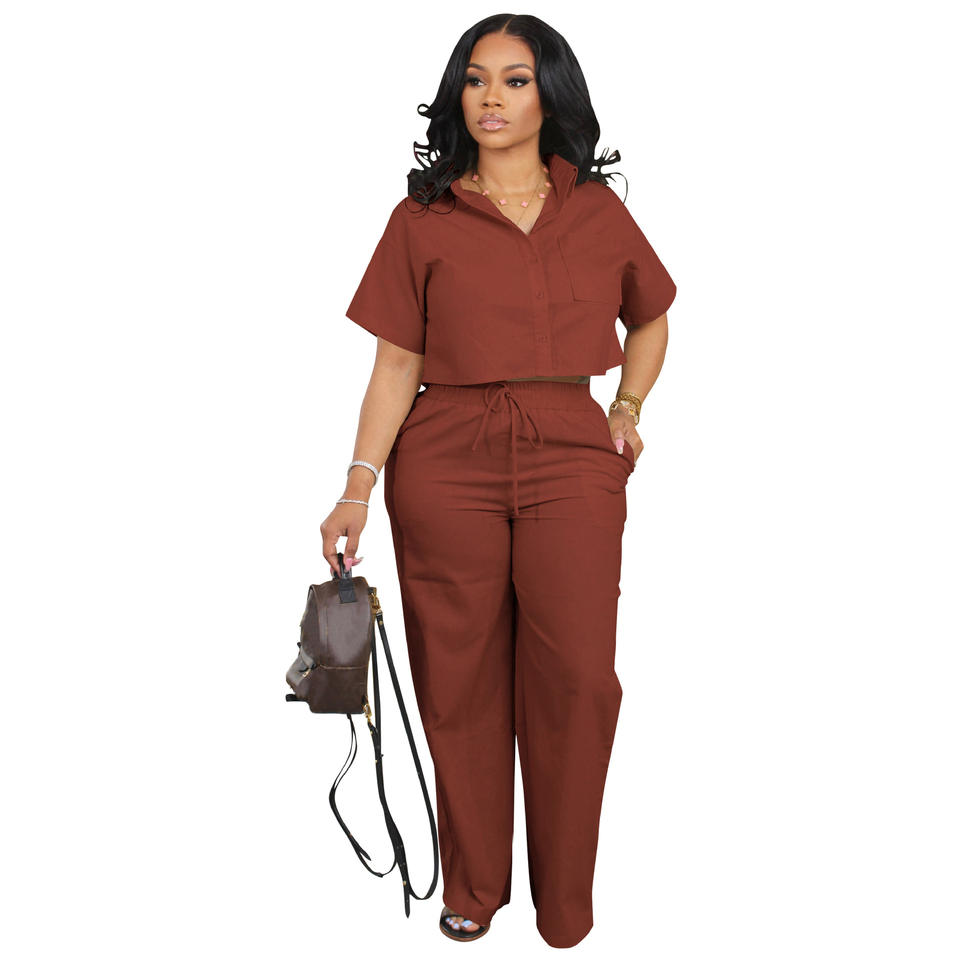 CN269 Women's Casual Office Set European American Style Linen Shirt Button Summer Sports Short-Sleeve Pants Cross-Border