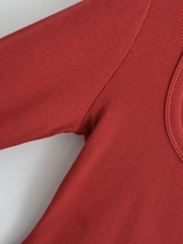 CNSHELL di base in morbido cotone Slim Fit Pullover con collo quadrato elastico a doppia linea di cucitura Micro costola Top a manica lunga da donna T-Shirt
