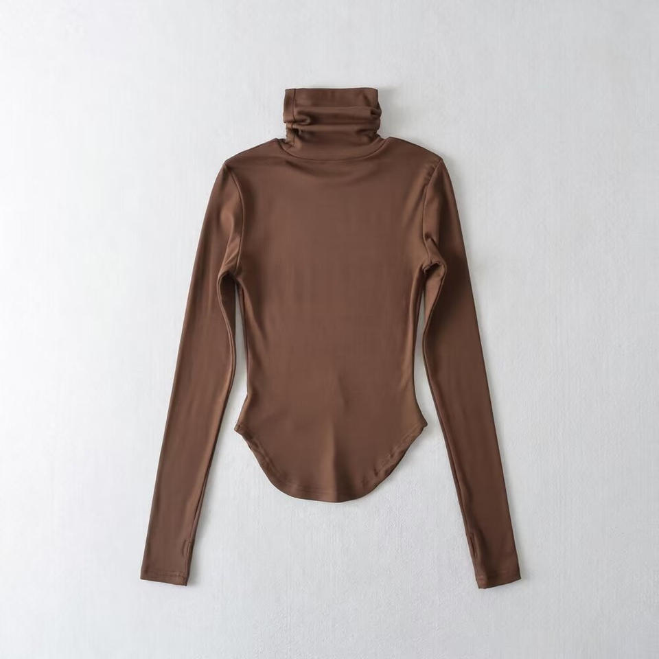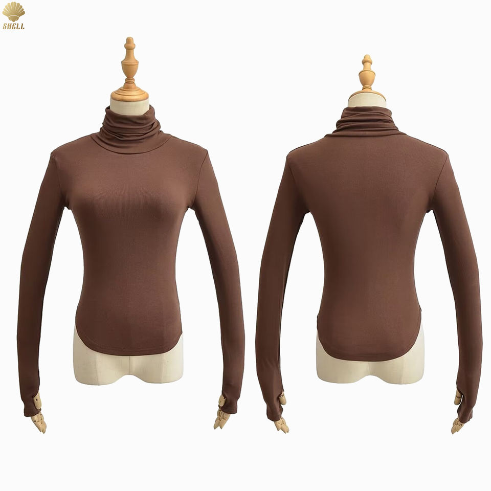 Maglietta a collo alto a collo alto in pile con foro a manica lunga a manica lunga per donna