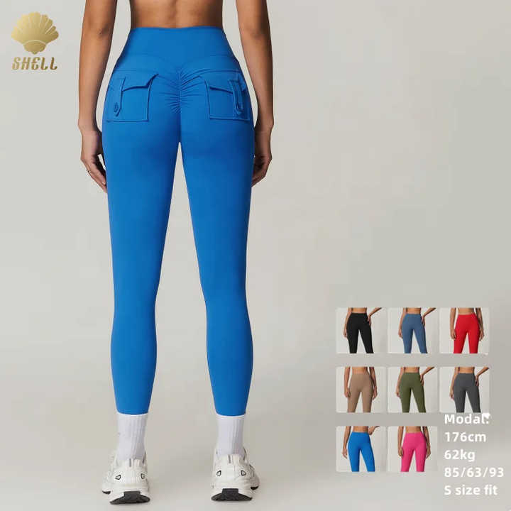 CNSHELL Cargo 3D con bottone da taschino aderente aderente ai piedi accartocciati con pieghe Sexy sul retro Leggings da donna pantaloni attillati