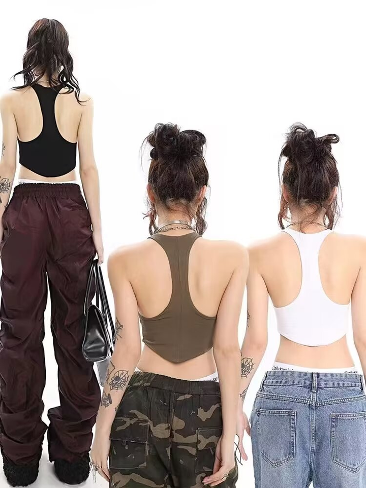 CNSHELL rifinito doppio strato Flare forma inferiore curva Racer a forma di retro Design classico Sport da palestra canotta da donna
