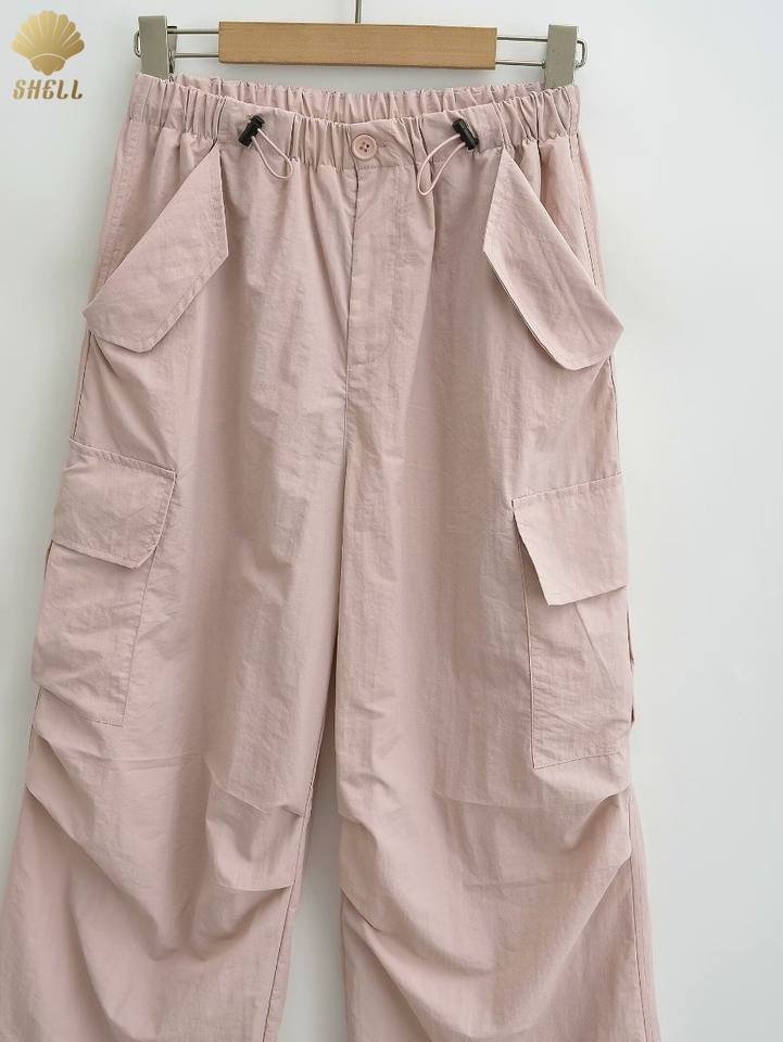 CNSHELL elasticizzato in vita alla caviglia con stringhe pantaloni dritti Multi-tasca pantaloni Casual larghi da donna