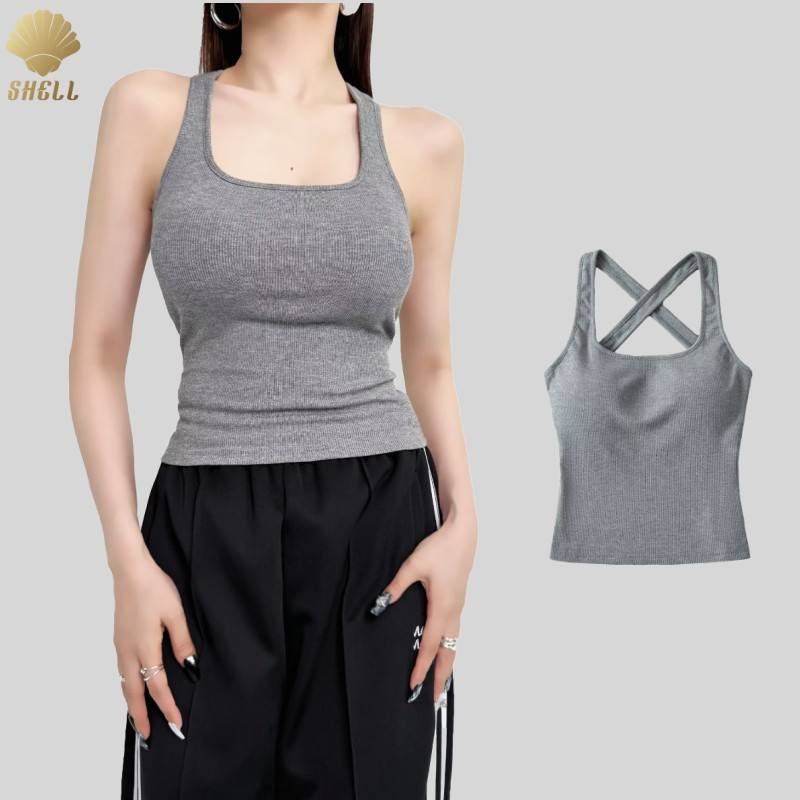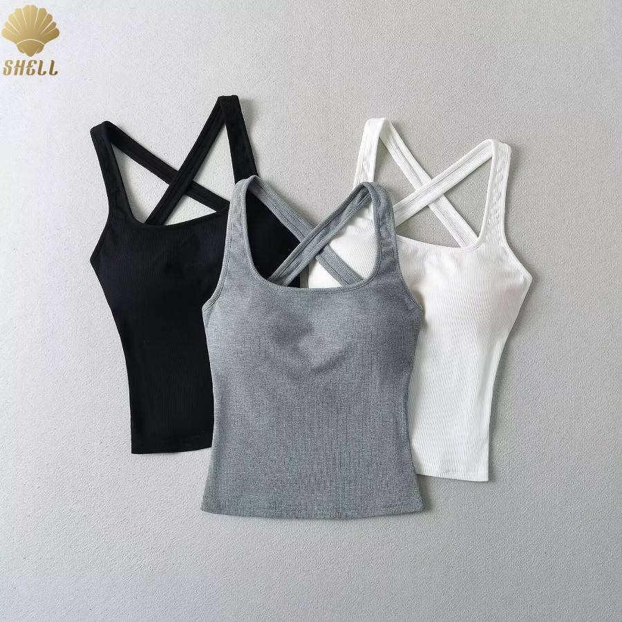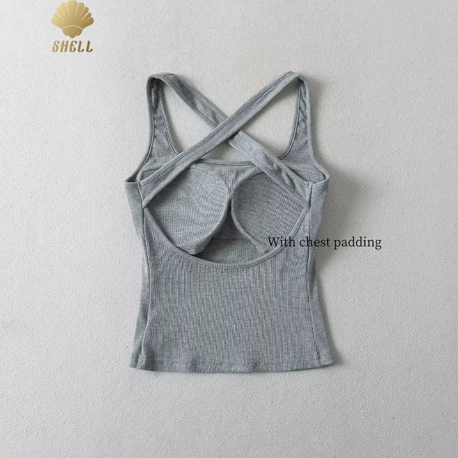 CNSHELL Manufacturer Custom Square Neck Backless Chest Padding High Support Gym Everyday Cotton Sports Bras for Women Fitness