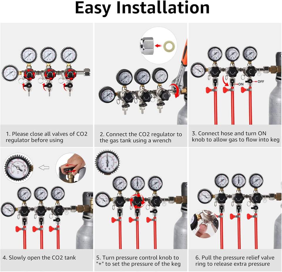 Regolatore di CO2 per Torre di Birra a Tre Rubinetti, Erogatore CGA-320, Regolatore per Bombola CO2, Regolatore di Gas per Feste e Matrimoni