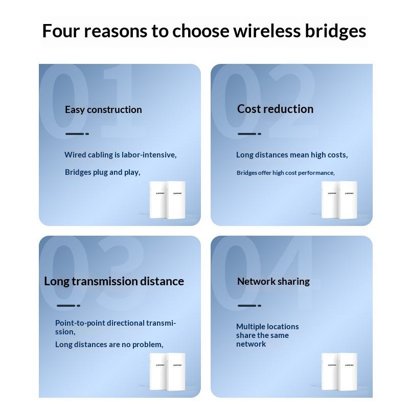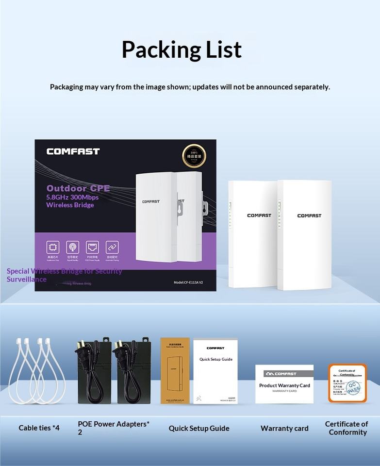 COMFAST CF-E113Av2 Set Bridge CPE Wireless 3KM 300M per Uso Esterno con 0 Porte LAN e Senza Funzione Modem