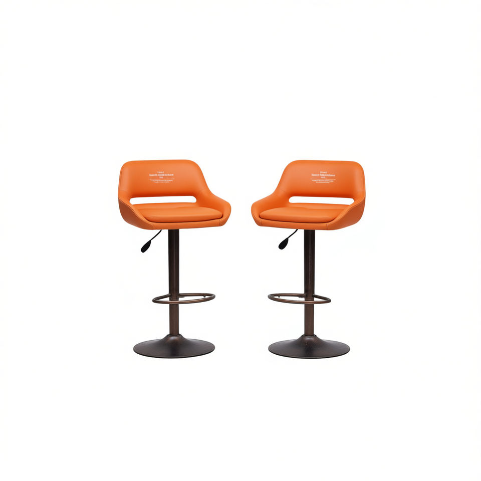 Set di 2 sgabelli da bar girevoli moderni, altezza regolabile, in similpelle arancione con base in metallo, per cucina, casa e uso commerciale