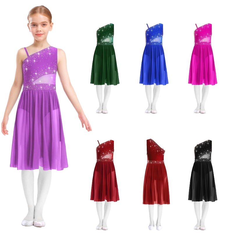 Abito da ballo con strass di alta qualità, conforme a CPC CE ISO, molto venduto, con rete trasparente per lezioni di danza e recite