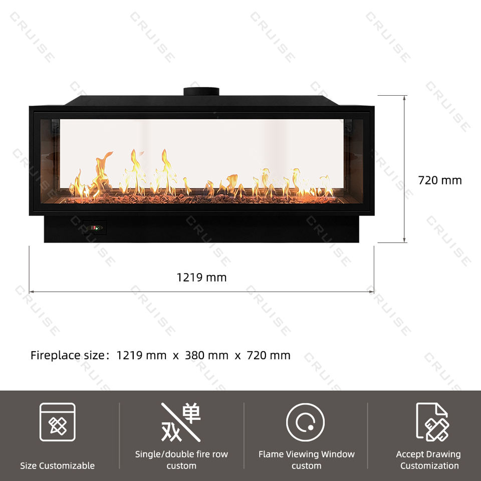 CRUISE Intelligent Natural Gas/Liquefied Gas Fuel 1219x380x720mm Double-Sided Transparent to See Fire Wall Mounted Gas Fireplace